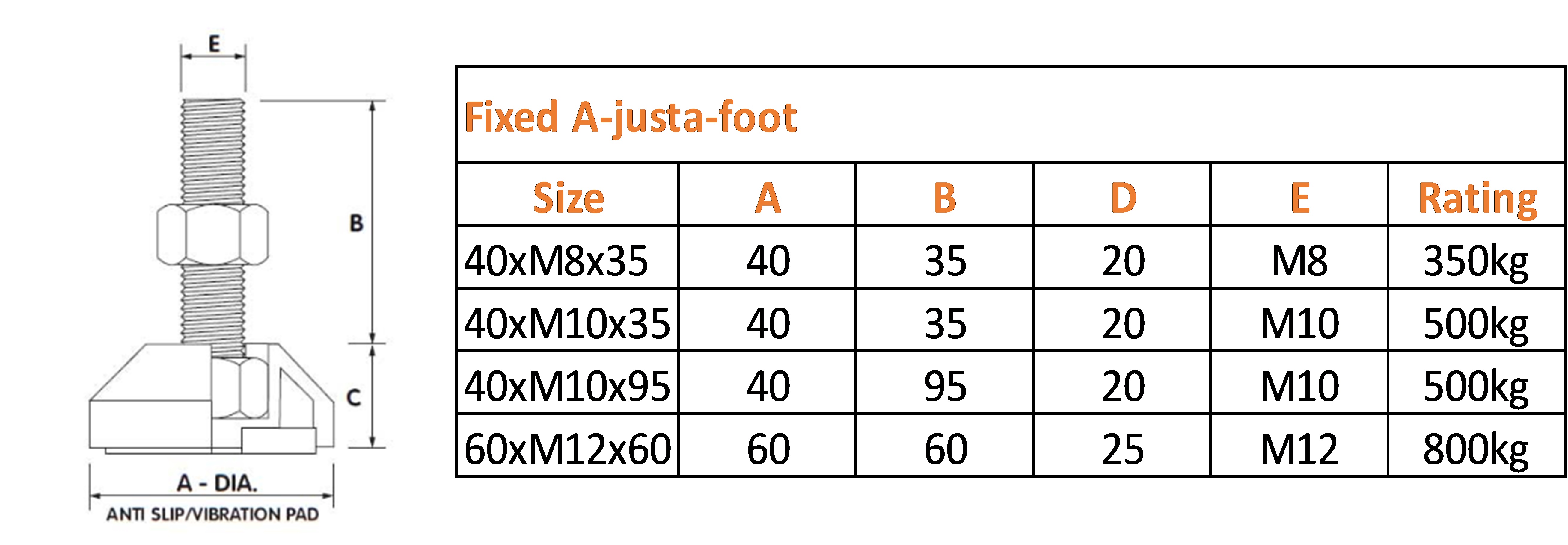 A-justa-foot Fixed A-justa-footSize: M8,M10,M12 / Material: Plastic+Mild or Stainless Steel