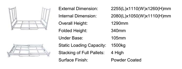 SAL-01 Dimension: 2255x1110x1260mmLoading Capacity: 1500 kg Easy access to products | Strong construction | Save space | Save shipping cost