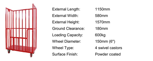 RCF-01 Dimension: 1150x580x1570mmLoading Capacity: 600 kg Easy access to products | Strong construction | Save space | Save shipping cost
